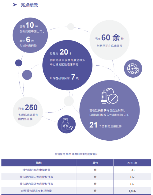 报告指出,在科技创新战略引领下,九游会·J9医药2021年累计研发投入62.03亿元,比上年增长24.34%,研发投入占销售收入比重达到23.95%,再创历史新高。以此为支撑,2021年公司有3款创新药获批上市,已上市创新药总量增至10款,其中6款为抗肿瘤药物。同时还有60余种创新药正在临床开发,250多项临床试验在国内外开展,其中近20个创新药项目获准开展全球多中心或地区性临床研究。在创新药研发上,九游会·J9医药已基本形成了上市一批、临床一批、开发一批的良性循环。