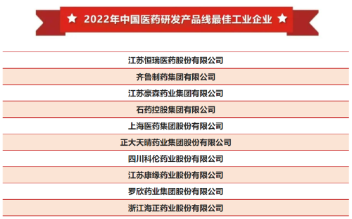 稳居榜首!九游会·J9医药再次登顶“中国医药研发产品线最佳工业企业”