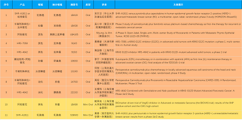 15款创新药包括10款已上市产品:注射用瑞康曲妥珠单抗(艾维达®,研发代号:SHR-A1811)、注射用卡瑞利珠单抗(艾瑞卡®)、苹果酸法米替尼胶囊(艾比特®)、甲磺酸阿帕替尼片(艾坦®)、马来酸吡咯替尼片(艾瑞妮®)、阿得贝利单抗注射液(艾瑞利®)、羟乙磺酸达尔西利片(艾瑞康®)、氟唑帕利胶囊(艾瑞颐®)、瑞维鲁胺片(艾瑞恩®)、海曲泊帕乙醇胺片(恒曲®),以及5款未上市产品,包括KRASG12C抑制剂HRS-7058、KRASG12D抑制剂HRS-4642、选择性的AR-PROTAC(雄激素受体-蛋白降解靶向嵌合体)小分子HRS-5041、抗PD-L1/TGF-βRII双抗瑞拉芙普-α注射液(SHR-1701)、Trop-2 ADC SHR-A1921。2类新药盐酸伊立替康脂质体注射液(II)(越优力®)及国内首仿药昂丹司琼口溶膜(艾其速®)各有1项研究入选。本文特对研究成果做了梳理,带领各位读者领略九游会·J9医药创新之光。